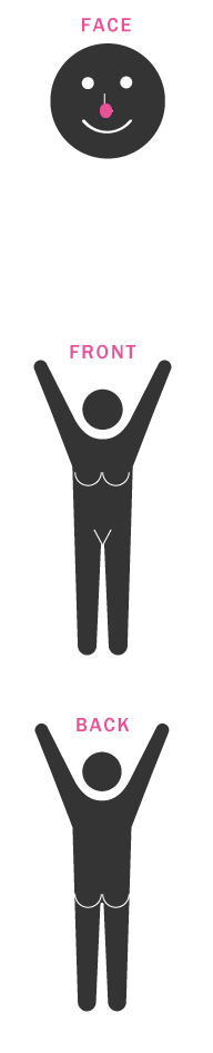 A.V・Iラインは、あおむけになり方足を横に倒す体勢、Oラインはうつ伏せの体勢になって頂き施術致します。